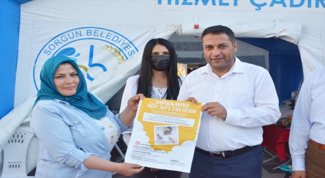 YOZGAT (AA) Sorgun Belediye Başkanı Mustafa Erkut Ekinci, SMA hastası Yiğit Alp'e destek olmak için Sorgun Şakir Efendi Şehir Meydanı'nda kurulan stantları ziyaret etti.