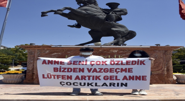 F.Ü. (17) ve R.Ü. (16) kardeşler, Cacabey Meydanı'ndaki Atatürk Anıtı önünde, "Anne seni çok özledik, bizden vazgeçme, lütfen artık gel anne" yazan pankart açtı.
