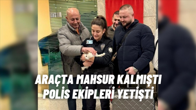 Araçta mahsur kalan kedi, polis ekipleri tarafından kurtarıldı ve sağlık kontrolü için veterinere götürüldü.