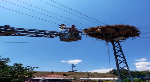 ÇANKIRI (AA) Çankırı'da elektrik tellerine takılan leylek yavrusu, itfaiye ekiplerince kurtarıldı.