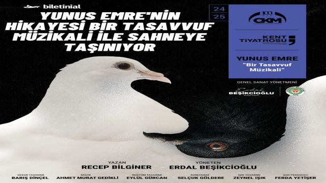 Etimesgut Kent Tiyatrosu Genel Sanat Yönetmeni Erdal Beşikcioğlu, halk ozanımız Yunus Emre'nin hayatını anlatan "Yunus Emre - Bir Tasavvuf Müzikali" ile seyircisiyle buluşmaya hazırlanıyor. Müzikalin prömiyeri 8 Şubat'ta Etimesgut Belediyesi 100. Yıl Cumhuriyet Kültür Merkezi’nde yapılacak ve biletleri şimdiden tükenmiş durumda.
