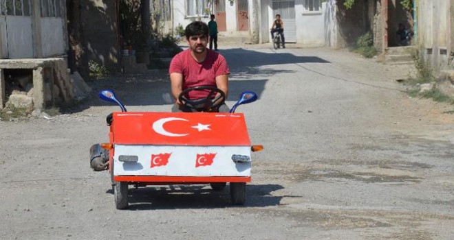 Orhaneli ilçesinin Gümüşpınar köyünde ikamet eden Fatih Seymen, köy çocukları için bir araba tasarladı. Fatih Seymen, çocukların eğlenceli vakit geçirmesini sağlamak maksadıyla tasarladığı aracı, hurdaya çıkan araçların parçalarını kullanarak yaptı. İlginç arabasını al bayrak motifiyle süsleyen Fatih Seymen, daha sonra bu aracı köy çocuklarına hediye etti.