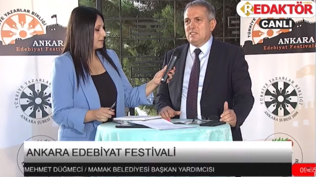 Türkiye Yazarlar Birliği tarafından Ankara'da ilk defa düzenlenen Mamak Belediyesi'nin ev sahipliğini yaptığı Ankara Edebiyat Festivalinin ortak canlı yayınına katılan Mamak Belediye Başkan Yardımcısı Mehmet Düğmeci '"MAMAK KİTAPLARLA ANILSIN İSTEDİK FESTİVALLE BUNU TAÇLANDIRDIK" dedi.