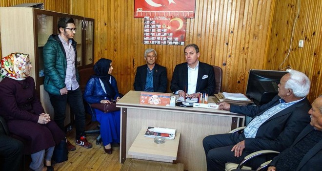Referandum çalışmaları kapsamında Domaniç Muhtarlar Derneğini ziyaret eden Kavuncu'nun, muhtarlarla toplantı yaptığı sırada, salona CHP Balıkesir Milletvekili Mehmet Tüm girdi.